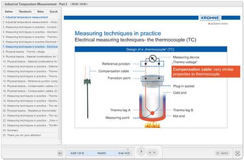 KROHNE Academy online gives you direct access to the knowledge and vast experience of KROHNE. The platform offers free of charge and commercial-free online courses about measurement principles (incl. e.g. the temperature measuring principle), sizing, advantages and limits of operation, applications and industries.